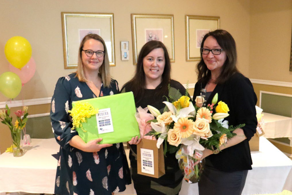 Registered Nurse Michelle (middle) was presented with the 2024 Essential Pieces Award from Madison Magne, Manager of Clinical Services for Acute Care, (left) and Janna Hotson, President and CEO, (right) at Deep River & District Health’s Springtime Social – an event which included service milestone awards as well as a celebration of other achievements throughout the past year.