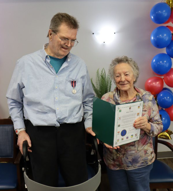 The Four Seasons Lodge Long-Term Care Home proudly celebrated a momentous occasion on January 31, 2025 as resident Mr. William (Bill) Croshaw was presented with the prestigious King Charles III Coronation Medal. The award was bestowed upon him by Cheryl Gallant, Member of Parliament for Renfrew-Nipissing-Pembroke, during a special ceremony held at the home.